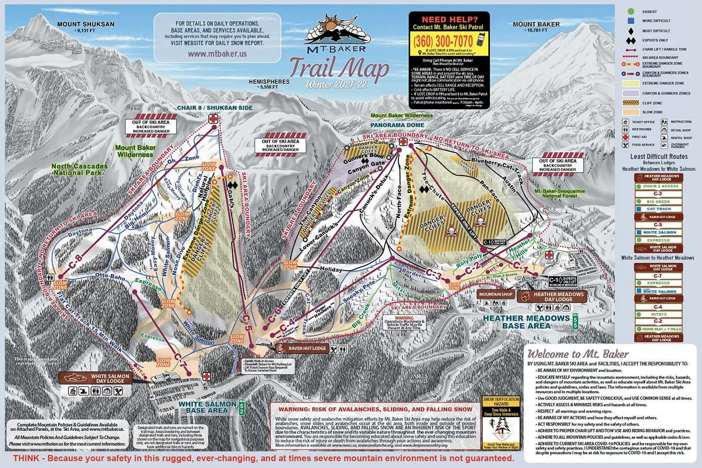 Trailhead: Hike is adjacent to the Mt. Baker Ski Area. Park in this parking lot. The trail to Artist’s Point begins at the end of the parking lot to the left of the restroom cabin heading south.